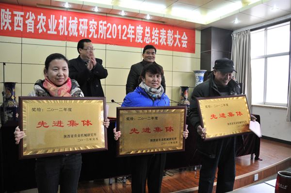 1月16日,陜西省農(nóng)業(yè)機(jī)械研究所召開2012年度總結(jié)表彰大會(huì)。大會(huì)總結(jié)和回顧2012年度工作,表彰2012年度工作中涌現(xiàn)出來的先進(jìn)集體和先進(jìn)工作者??偨Y(jié)表彰大會(huì)由所工會(huì)主席甄西平主持,所領(lǐng)導(dǎo)、中層干部和全體職工參加。