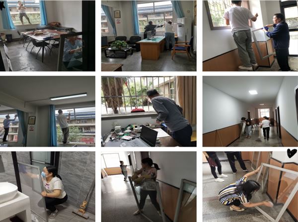 10時(shí)整,黨員職工不約而同拿起臉盆、抹布和拖把開始忙碌起來。有的站在凳子上擦玻璃,有的穿梭在樓道來回拖地,還有的蹲下身子清理墻裙上的灰塵。經(jīng)過一個(gè)多小時(shí)的緊張勞動(dòng),達(dá)到了活動(dòng)預(yù)期目的。